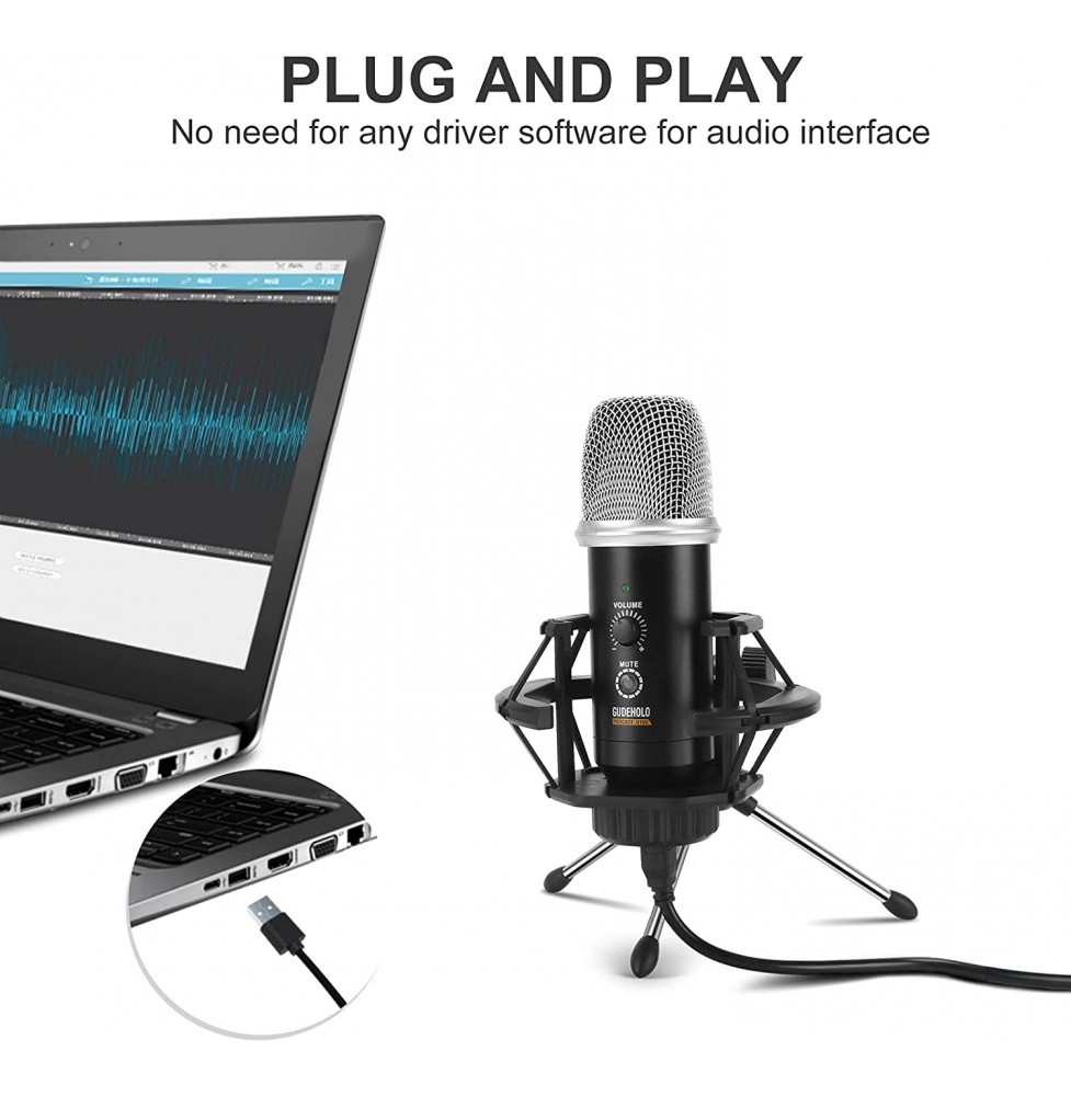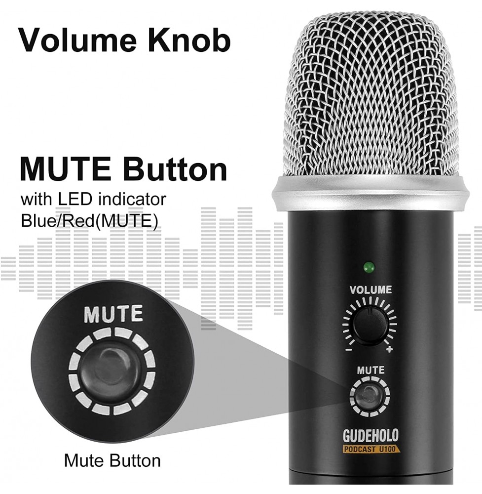 GUDEHOLO USB Microphone for Computer with Adjustment Arm Stand, Mute Button, USB Mic for Gaming, Podcast, Live Streaming, YouTube on PC, Fits for Windows & PC, not for Phone
